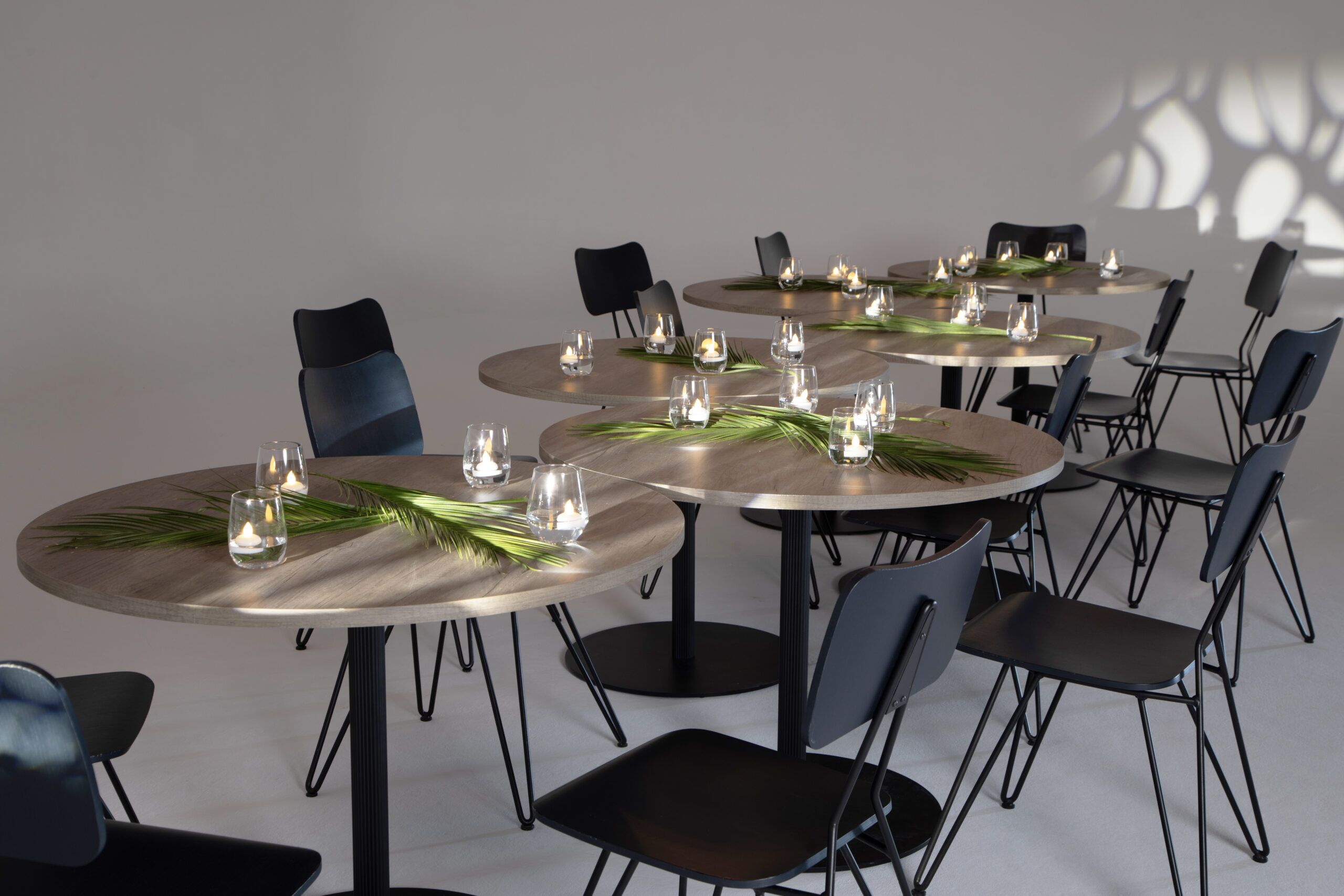 Blume table dining or cafe table. The distinctive base column in extruded aluminium with a sophisticated flower-shaped profile featuring along its entire height, for a unique style. High number of stock held.