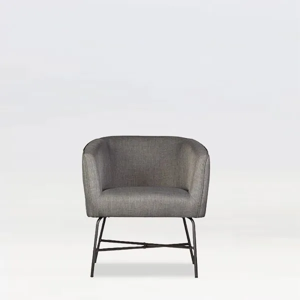 Contemporary style and understated elegance, the Edward accent chair is what you need to elevate the aesthetics of your event. It boasts a classy silhouette with a hint of glamorous detail to transform the look of your space. Upholstered in grey linen style fabric, this accent offers excellent seating comfort. The legs are steel with a sturdy black cross frame to support.