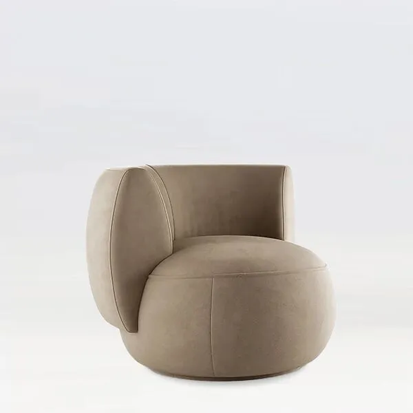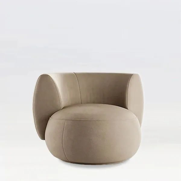The Harlow Swivel armchair in soft beige velvet. A stage panel chair for conferences, exhibitions or as an addition to lounge areas.