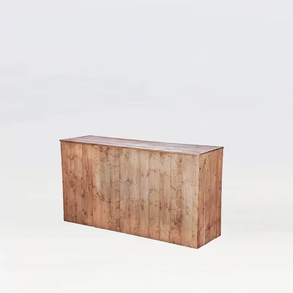 Modern Rustic Bar – Recycled wood for a vintage or contemporary vibe. This foldable bar is equipped with shelving. Slide bars together for a 4m to 12m long bar, or maybe a square or U bar. As nature intended, all bars may vary in colour due to the natural wood.
